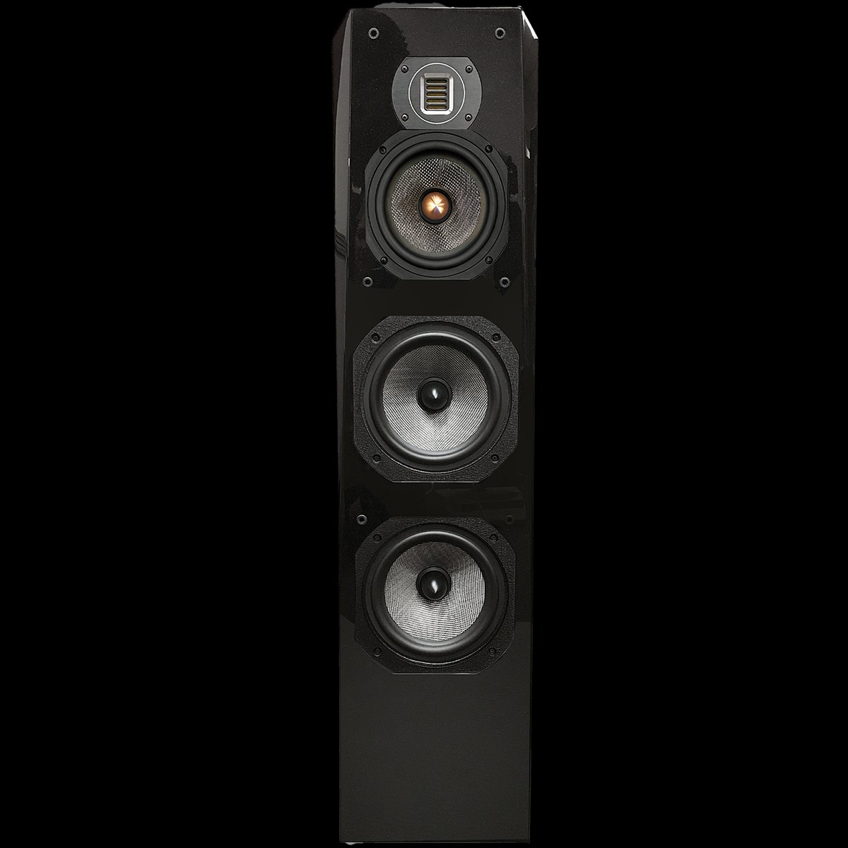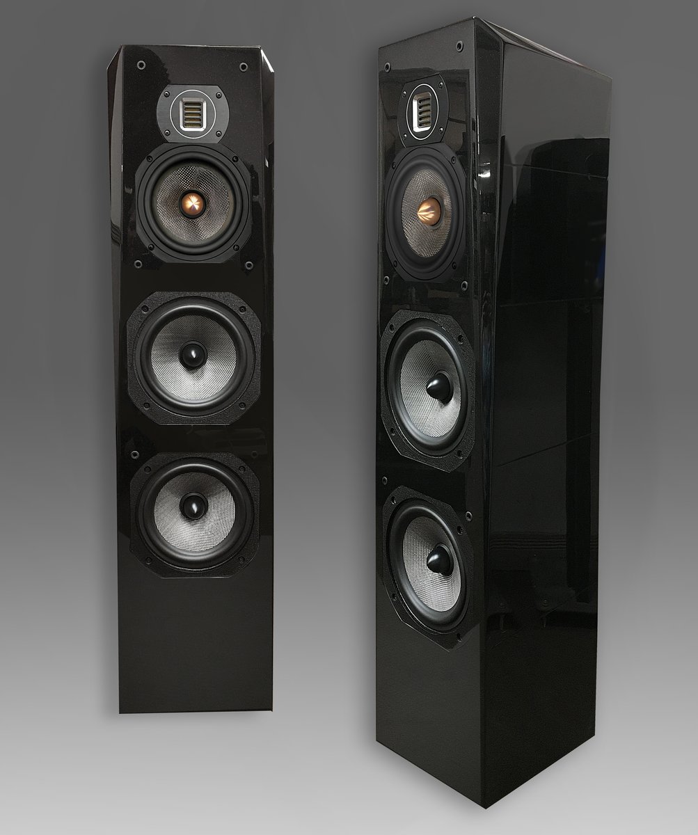 Entry-level floorstanding tower. Four-driver, three-way passive design with AMT ribbon tweeter and dual 8-inch woofers.